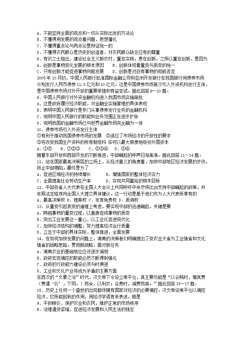 【文檔名稱】 2010湖南湘潭市直教師招聘考試政治真題(Word版).doc