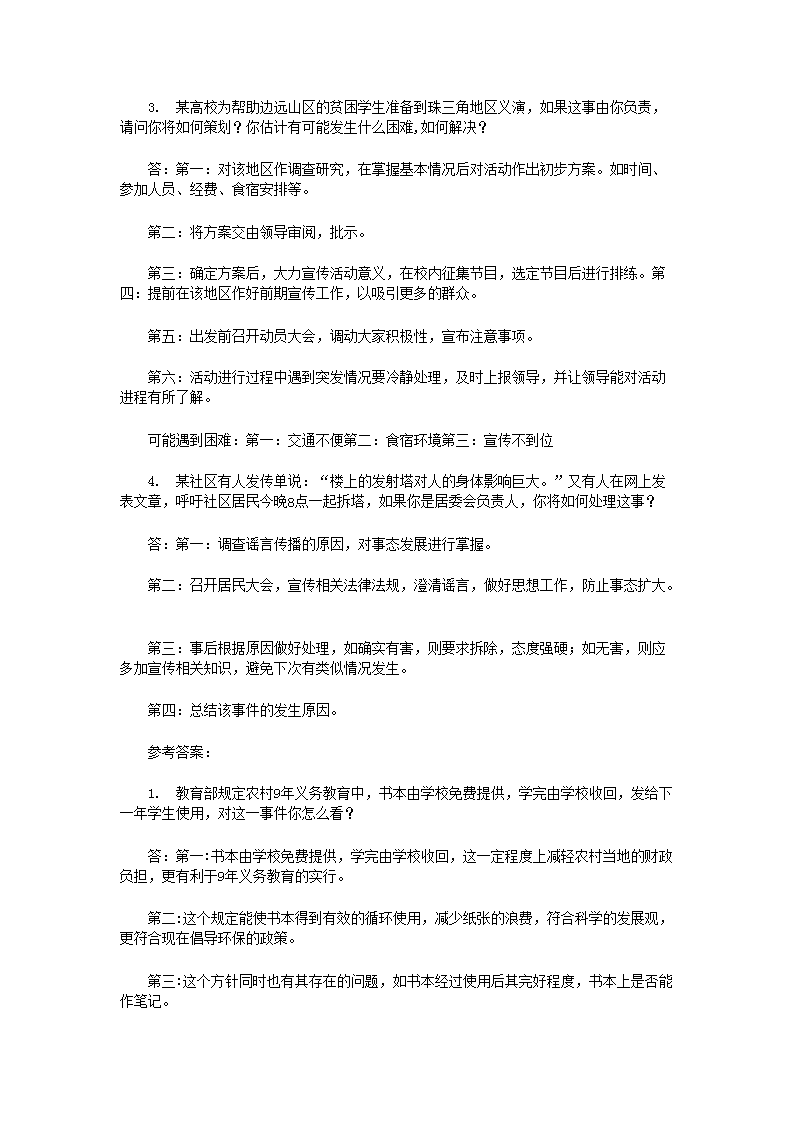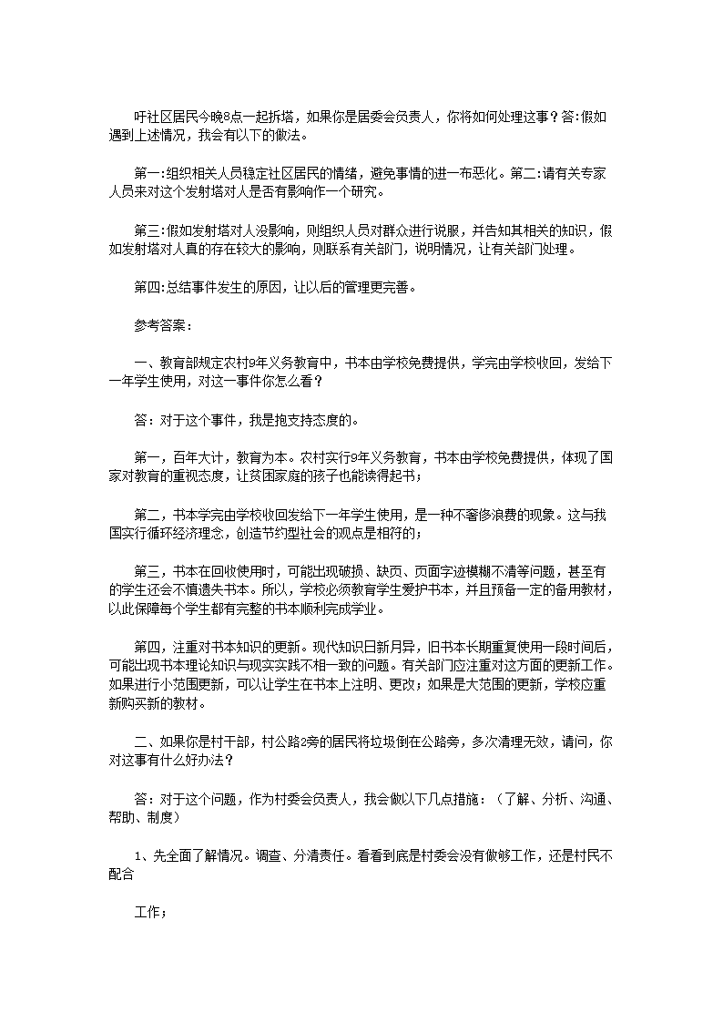 【文檔名稱】 2008年廣東省事業(yè)單位面試真題及答案(Word版).doc