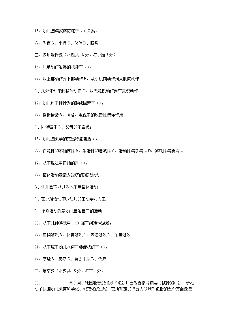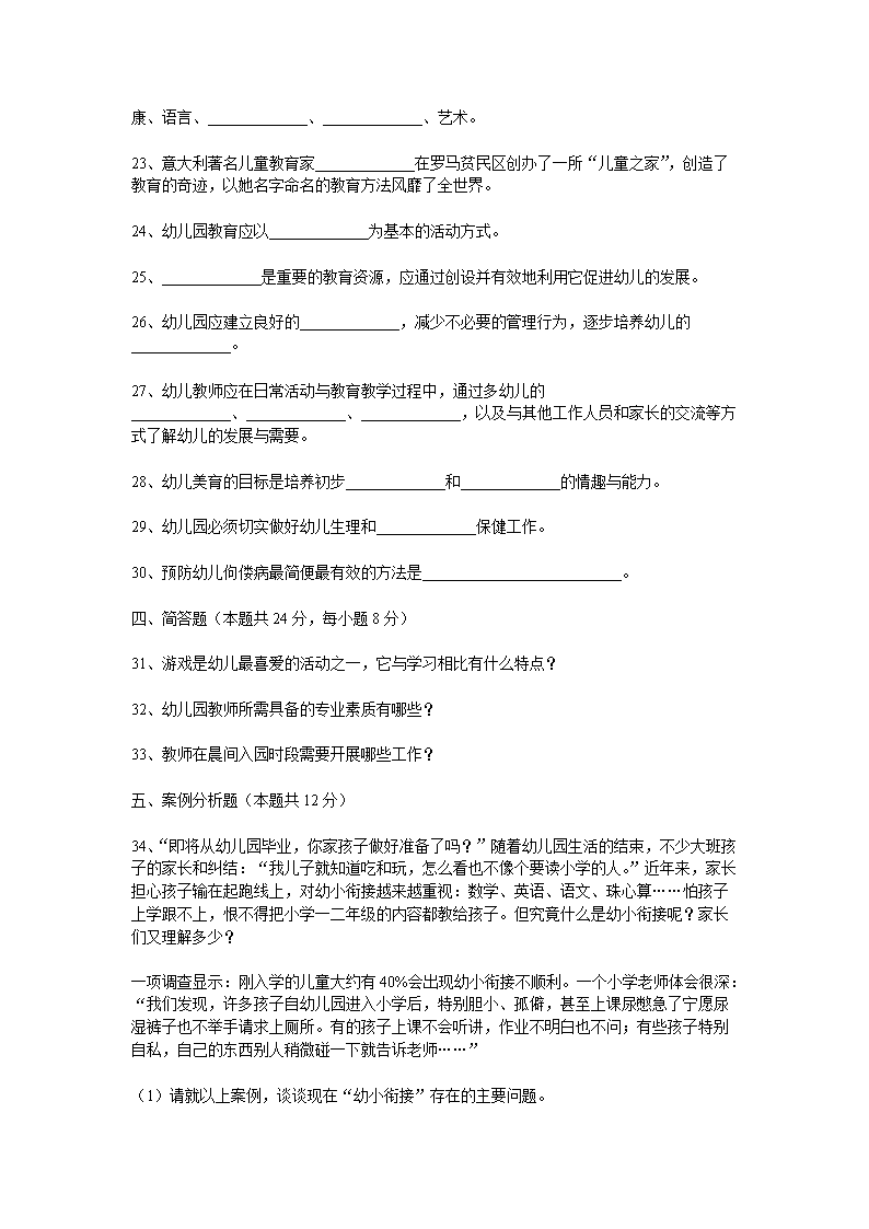 【文檔名稱】 2010年湖南衡陽常寧教師招聘考試幼兒教育專業(yè)理論試題(Word版).doc