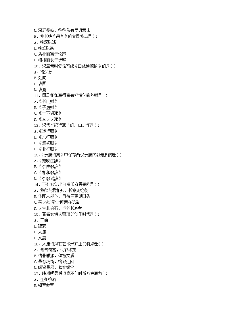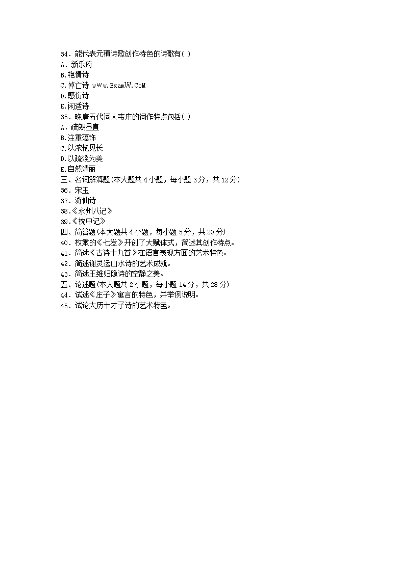 【文檔預(yù)覽】 無憂考網(wǎng)整理發(fā)布2011年7月全國自考中國古代文學(xué)史一真題(Word版),前五頁預(yù)覽如下: