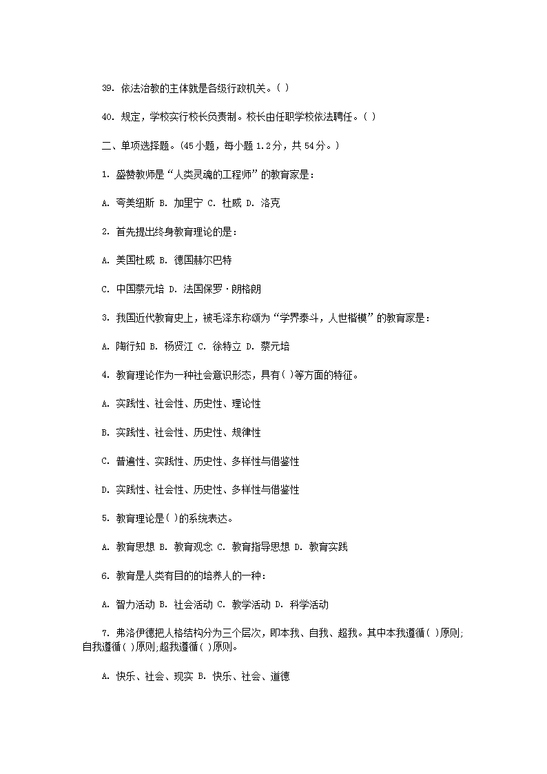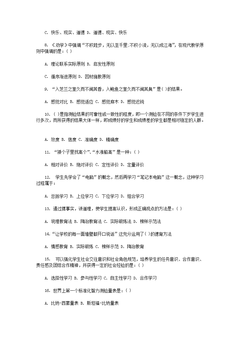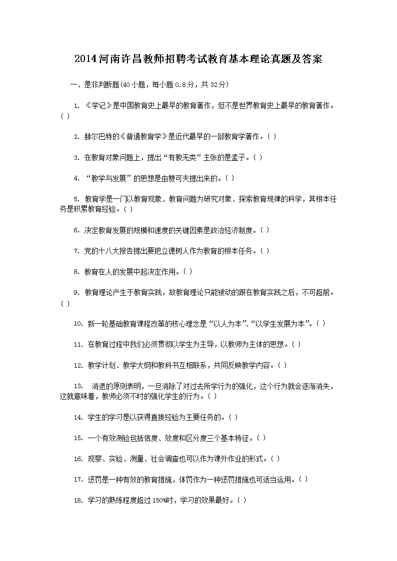 【文檔名稱(chēng)】 2014河南許昌教師招聘考試教育基本理論真題及答案(Word版).doc