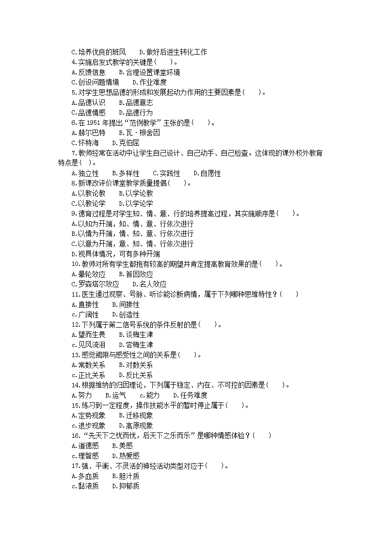 - 2014年江蘇南通通州區(qū)教師招聘考試教育理論基礎(chǔ)知識(shí)真題及答案