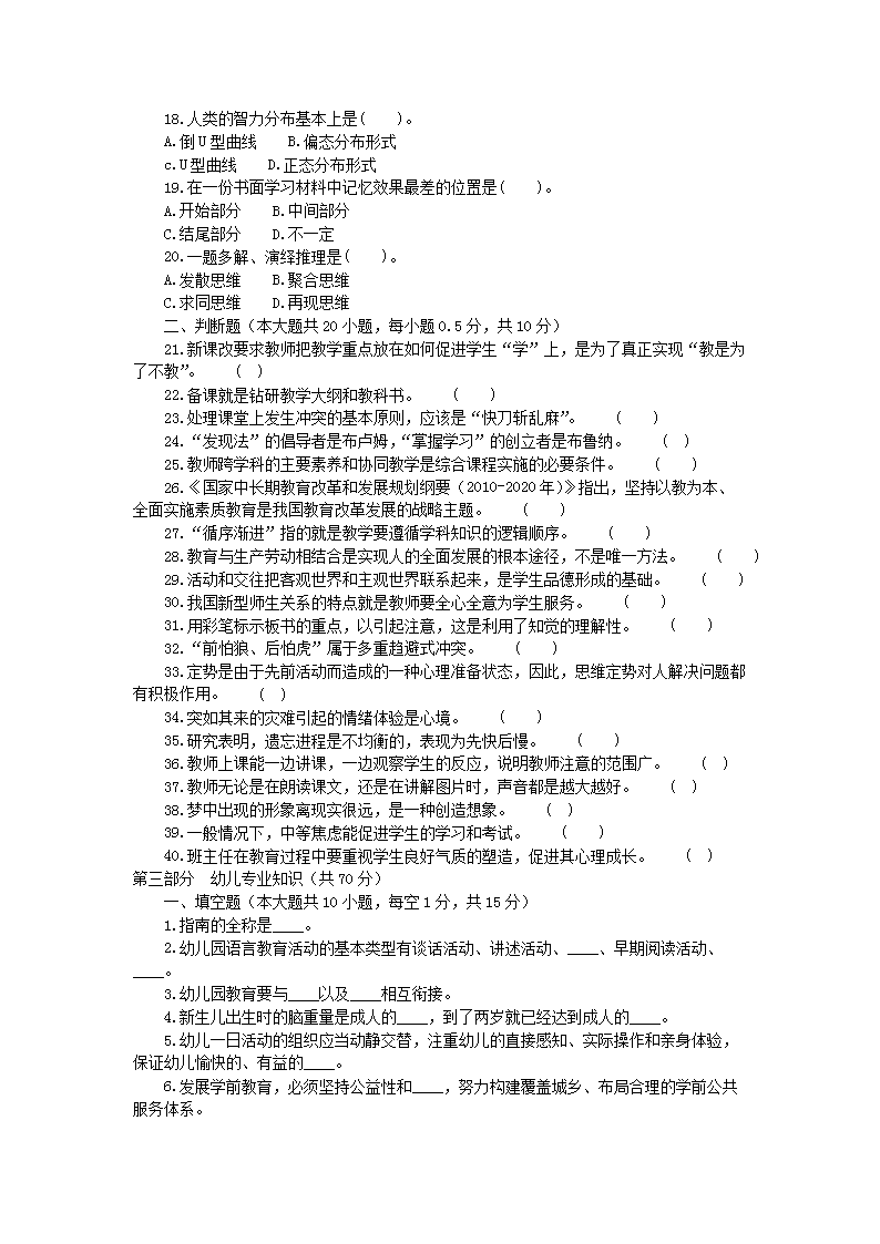 【文檔預(yù)覽】 無憂考網(wǎng)整理發(fā)布2017年7月28日江蘇南通海門市幼兒園教師招聘考試真題(Word版),前五頁預(yù)覽如下: