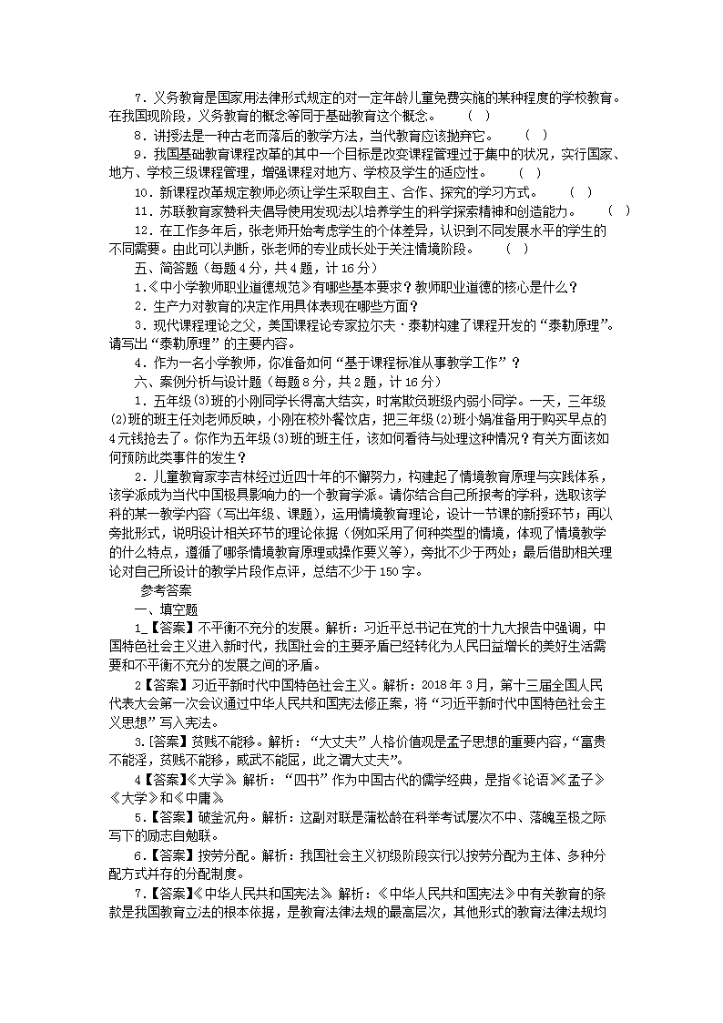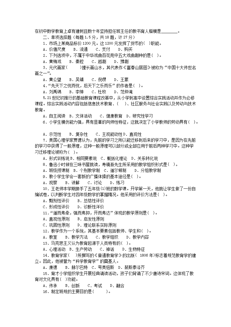 - 2015年江蘇南通海門區(qū)教師招聘考試小學教育理論基礎(chǔ)知識真題及答案