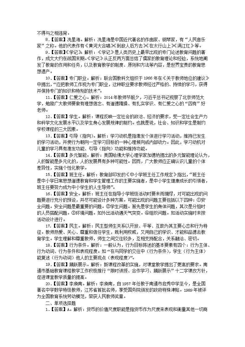【文檔名稱】 2018年5月13日江蘇南通崇川區(qū)教育系統(tǒng)招聘教師考試真題及答案(Word版).doc