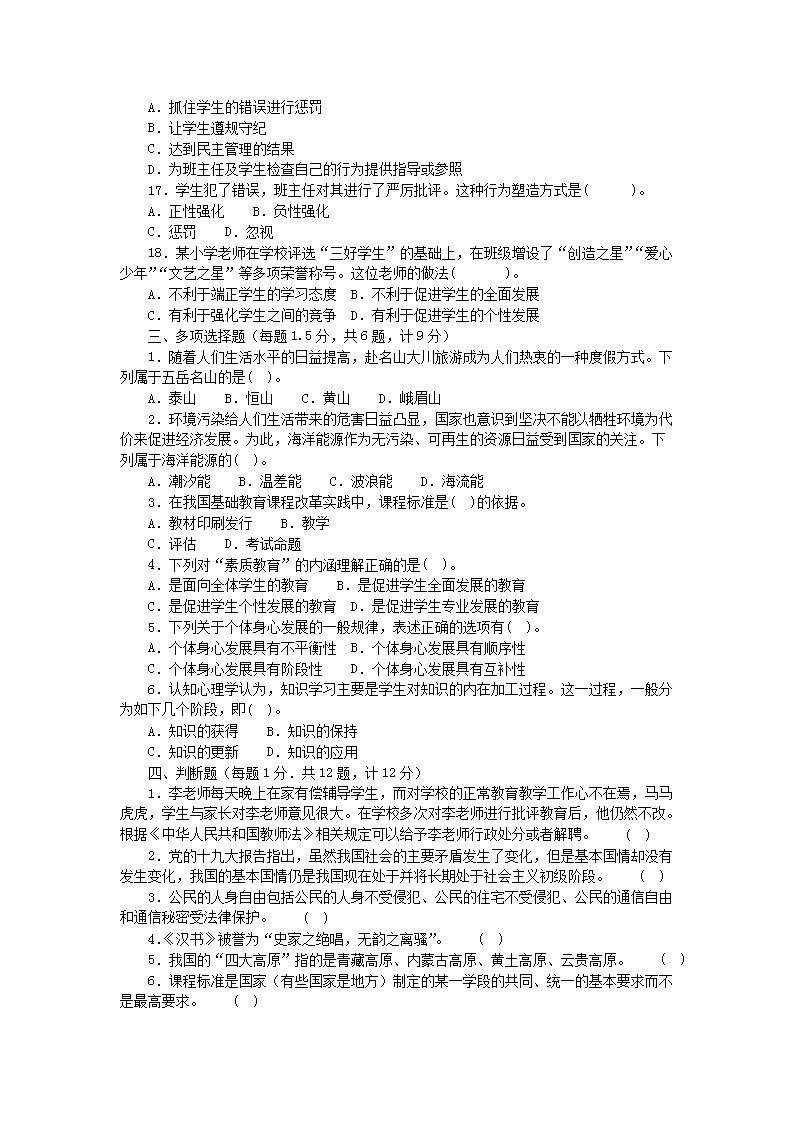 - 2015年5月24日江蘇南通崇川區(qū)教師招聘考試教育基礎(chǔ)知識真題及答案