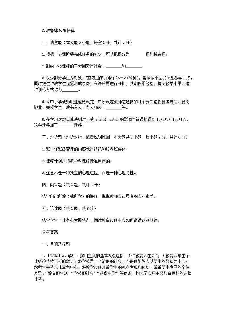 【文檔預覽】 無憂考網整理發(fā)布2017年江蘇淮安金湖縣教師招聘考試公共理論真題及答案(Word版),前五頁預覽如下: