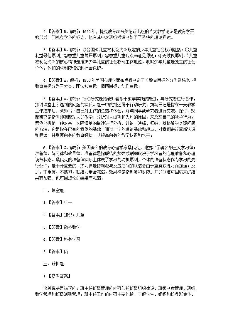 - 2015年江蘇南通教師招聘考試小學教育理論基礎知識真題及答案