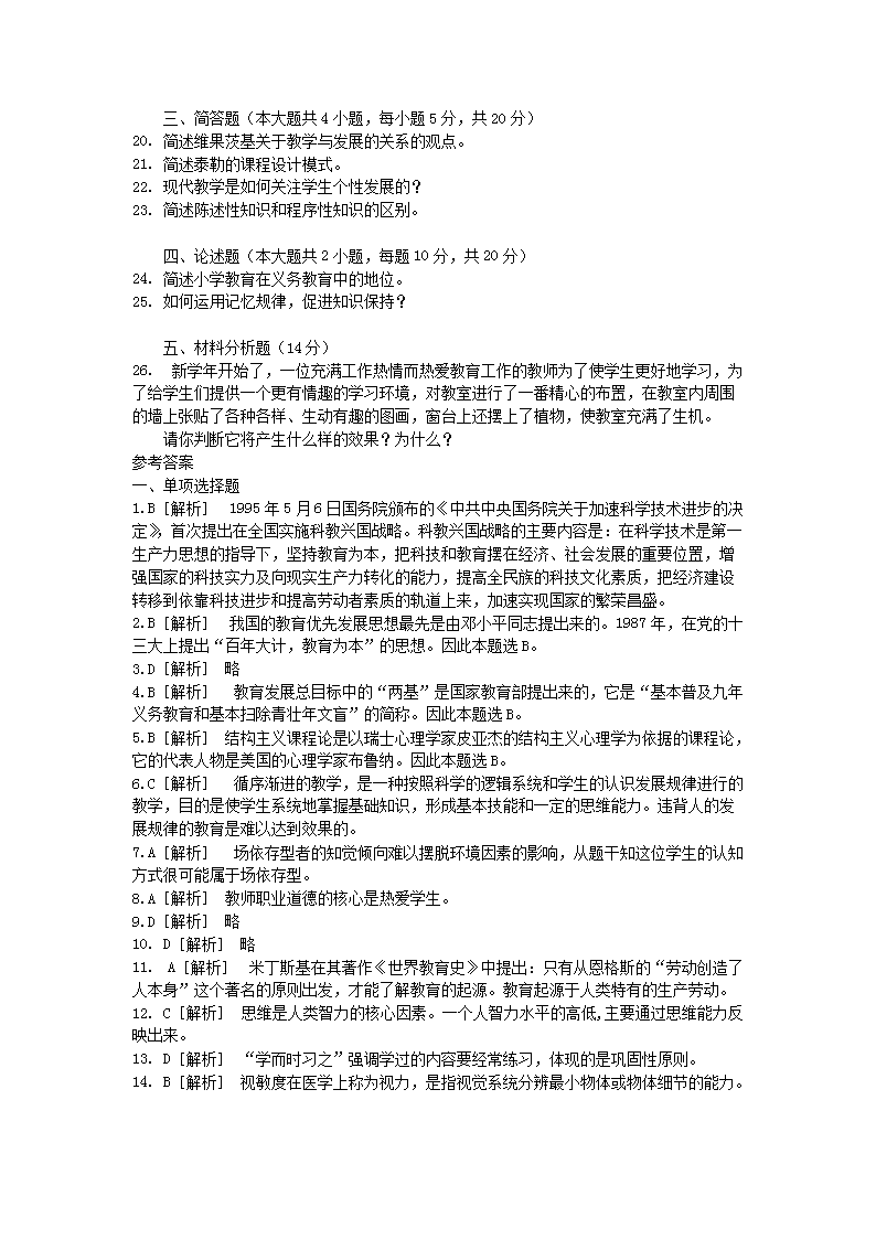 【文檔名稱】 2010年湖南中小學(xué)教師招聘考試小學(xué)教育基礎(chǔ)知識真題及答案(Word版).doc