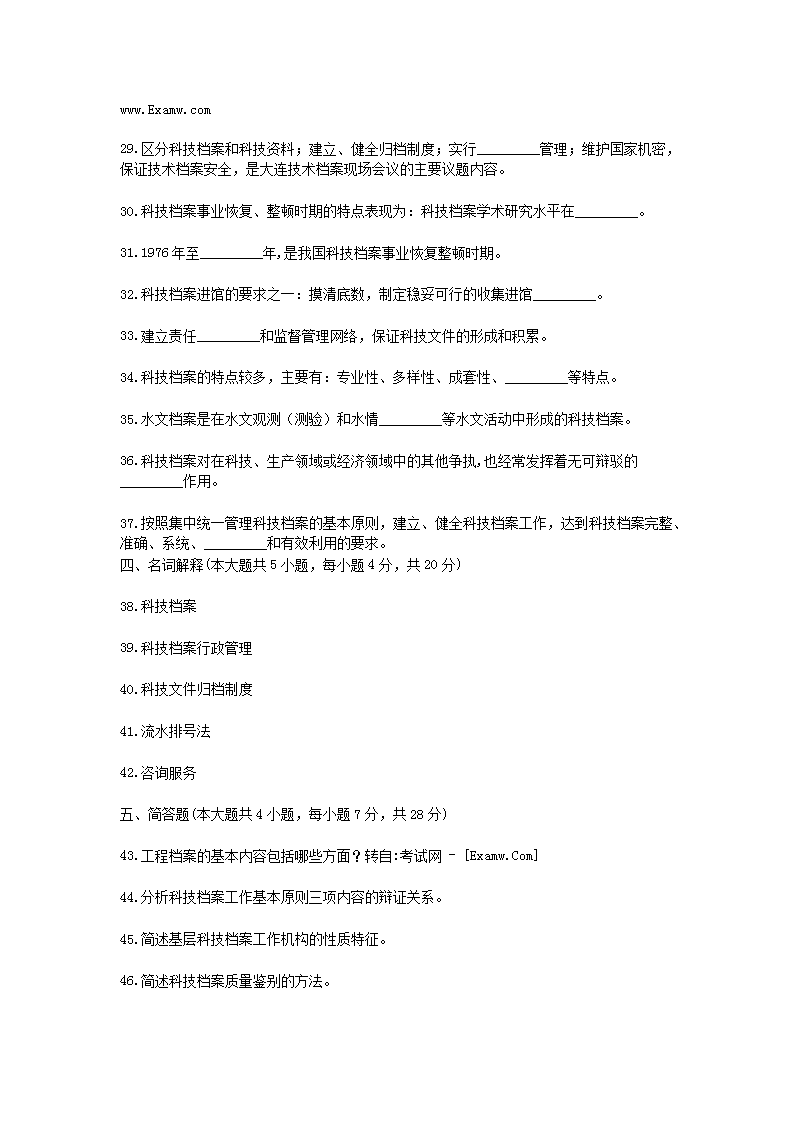 【文檔預(yù)覽】 無憂考網(wǎng)整理發(fā)布2008年1月浙江省自學(xué)考試科技檔案管理真題(Word版),前五頁預(yù)覽如下: