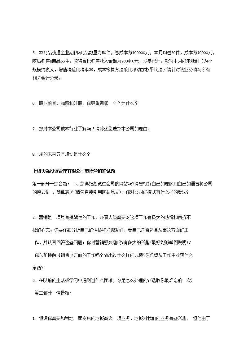 【文檔名稱】 投資公司招聘員工面試試題匯總(Word版).doc