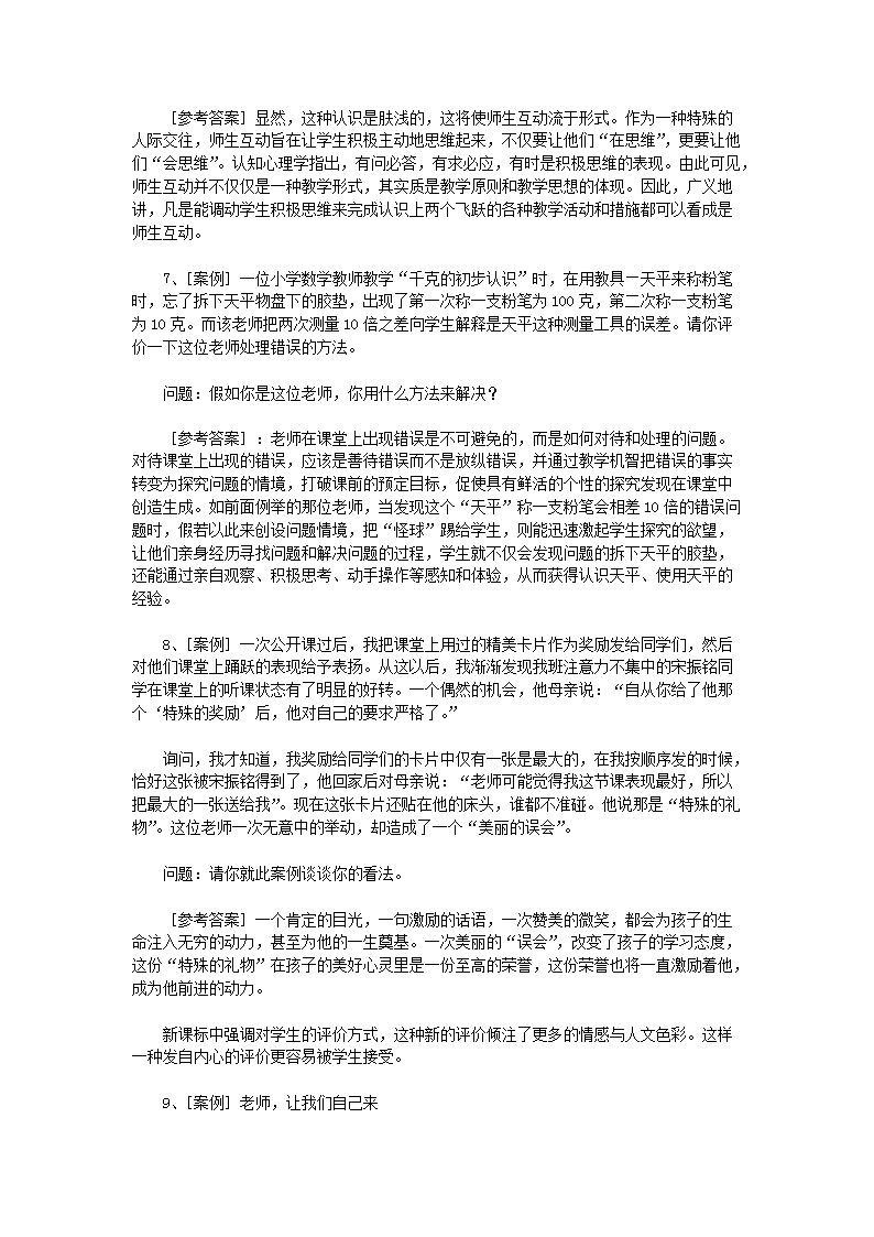 【文檔名稱】 2012江西教師統(tǒng)一招聘考試案例分析題及答案(Word版).doc