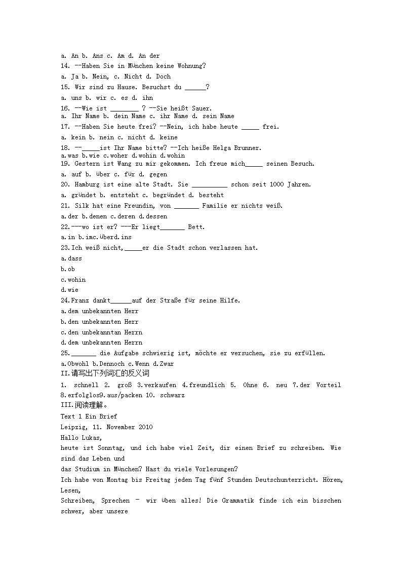 【文檔名稱】 2011浙江杭州師范大學(xué)二外德語考研真題(Word版).doc