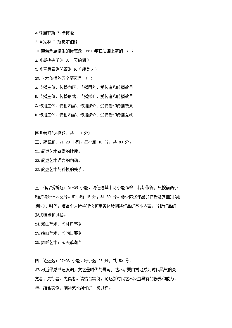 【文檔名稱】 2019年廣東成人高考專升本藝術(shù)概論真題及答案(Word版).doc