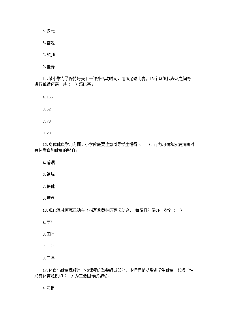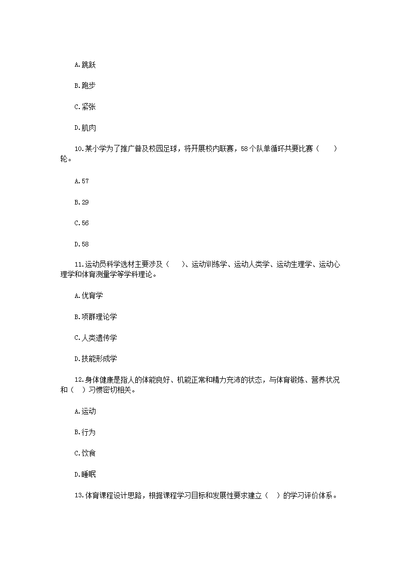 【文檔名稱】 2019年河南開封中小學(xué)體育教師招聘考試真題(Word版).doc