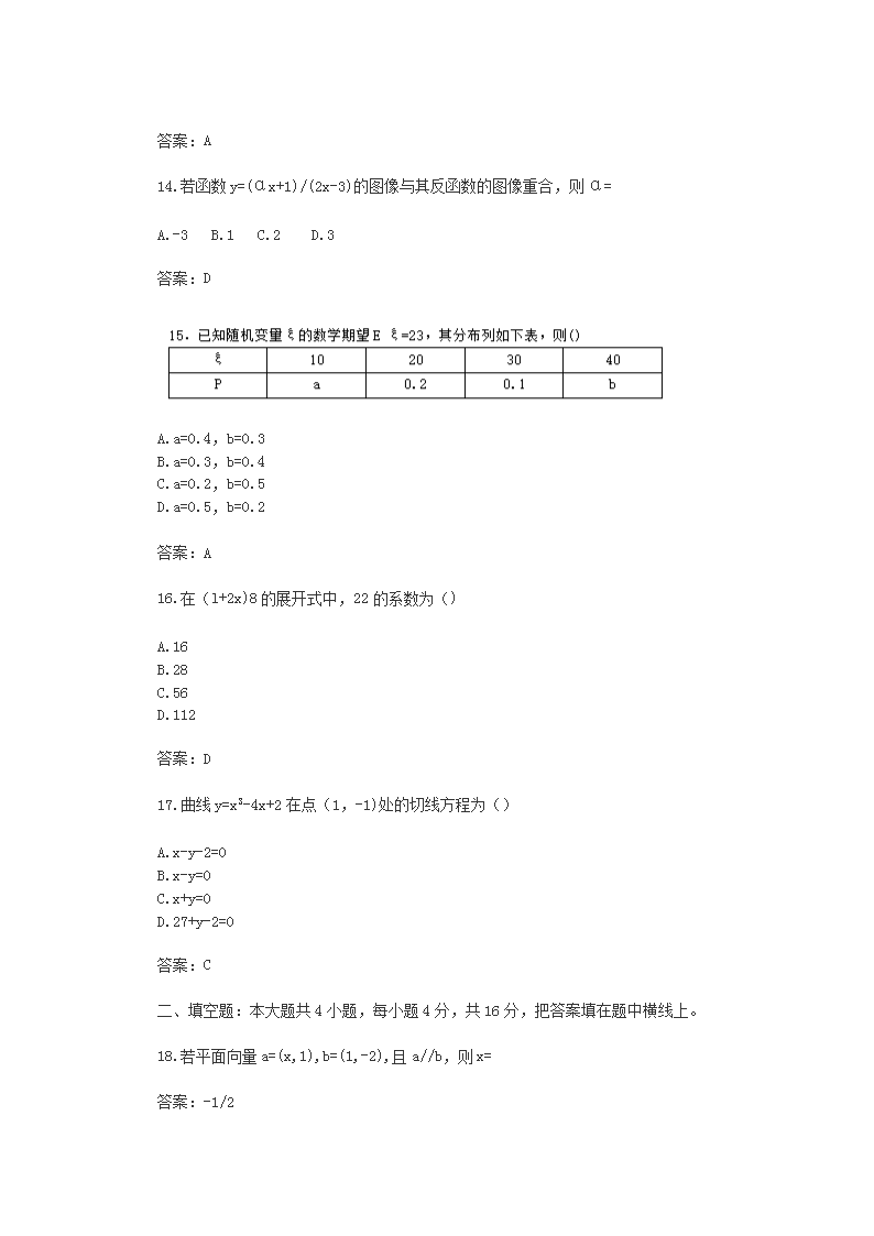【文檔名稱】 2016年西藏成人高考高起點數學理真題及答案(Word版).doc