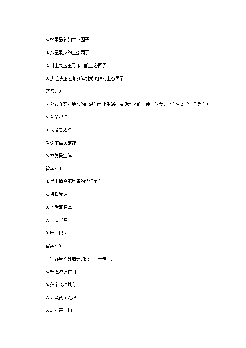 【文檔預覽】 無憂考網整理發(fā)布2017年天津成人高考專升本生態(tài)學基礎真題及答案(Word版),前五頁預覽如下: