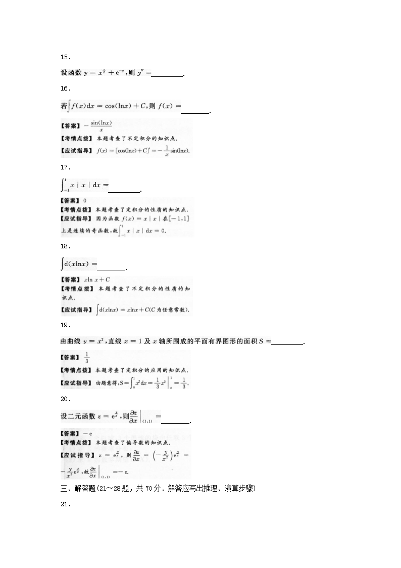 【文檔名稱】 2015年寧夏成人高考專升本高等數(shù)學(xué)二真題及答案(Word版).doc