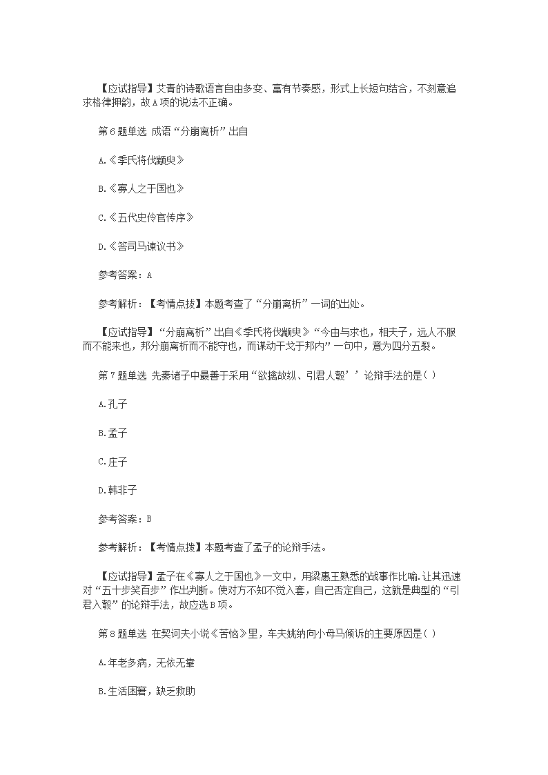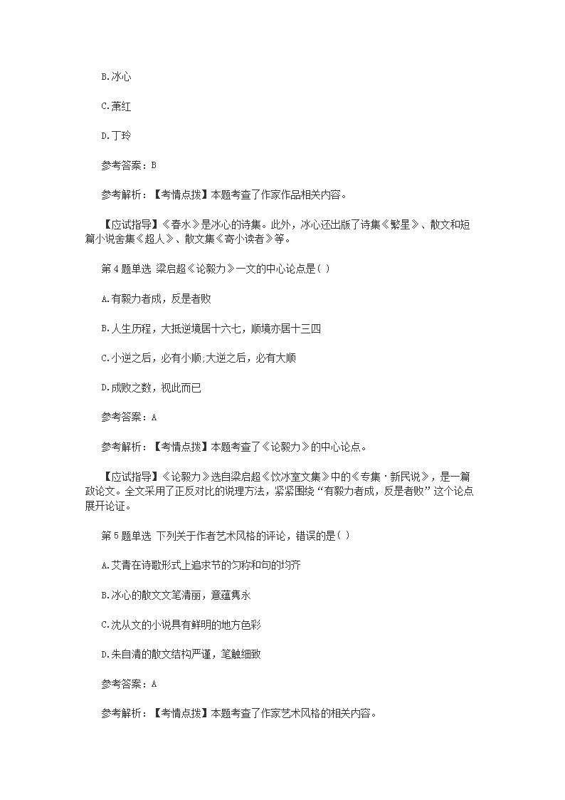 【文檔預覽】 無憂考網(wǎng)整理發(fā)布2015年寧夏成人高考專升本大學語文真題及答案(Word版),前五頁預覽如下: