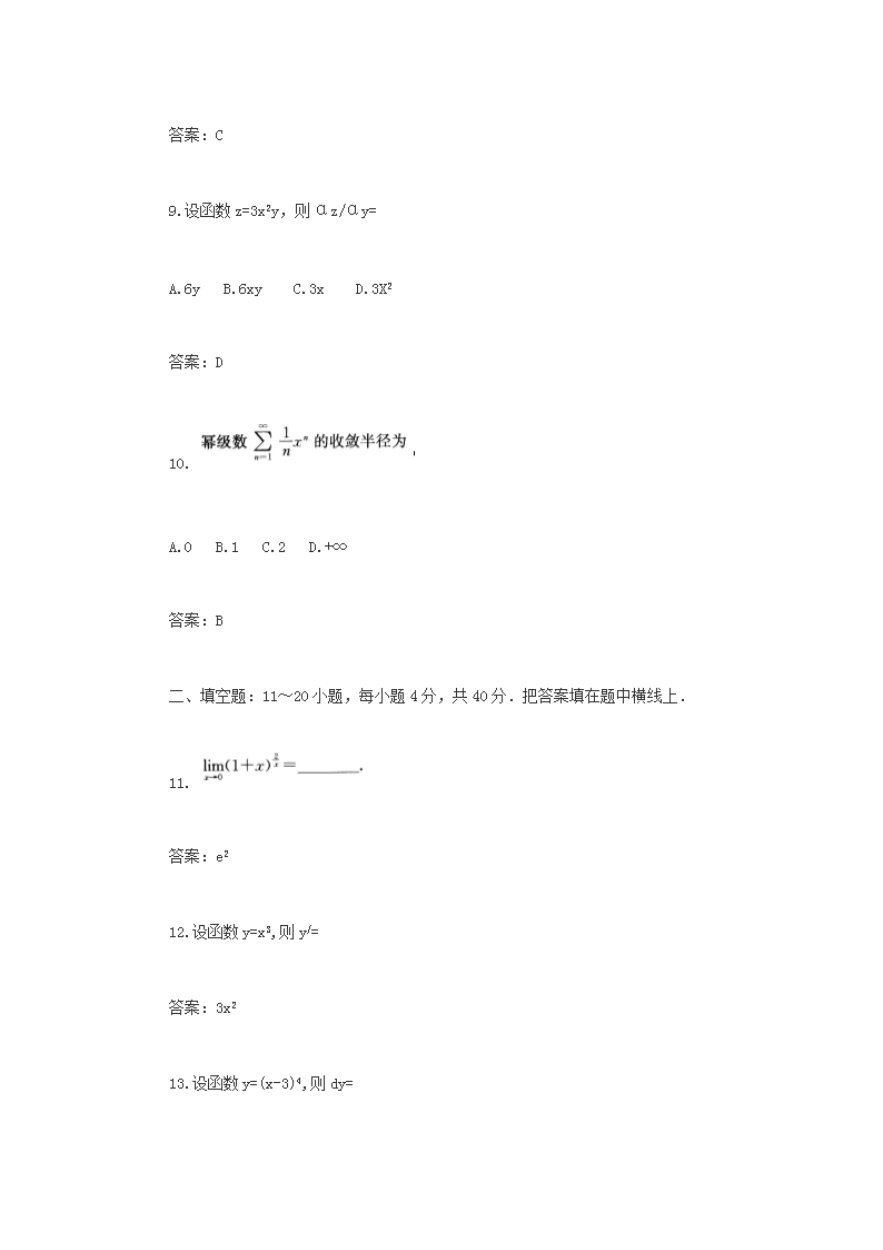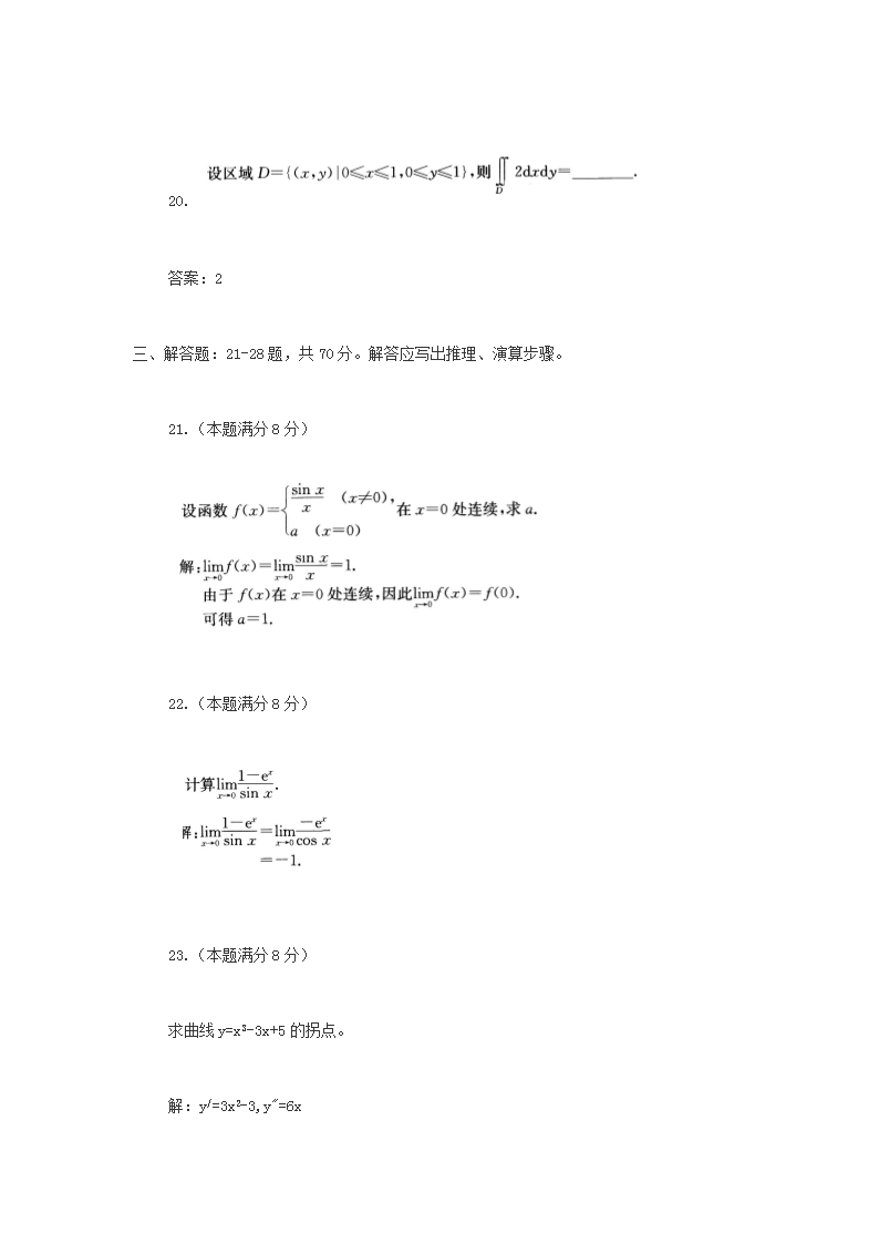 【文檔名稱】 2016年寧夏成人高考專升本高等數(shù)學(xué)一真題及答案(Word版).doc