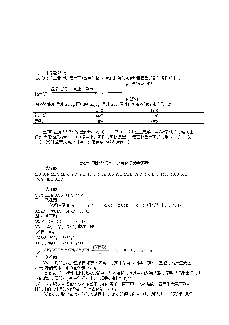 【文檔名稱】 2010年河北普通高中會考化學(xué)真題及答案(Word版).doc