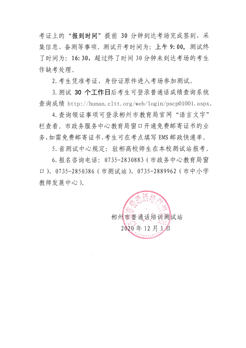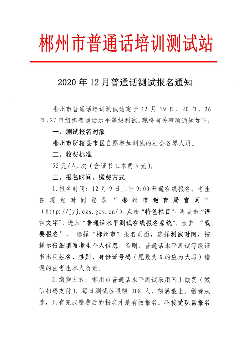 【#普通話考試# #2020年12月湖南郴州普通話測(cè)試報(bào)名通知#】®無憂考網(wǎng)從郴州市教育局獲悉,2020年12月湖南郴州普通話測(cè)試報(bào)名通知已公布,12月9日開始報(bào)名,12月19日起舉行考試,具體詳情如下: