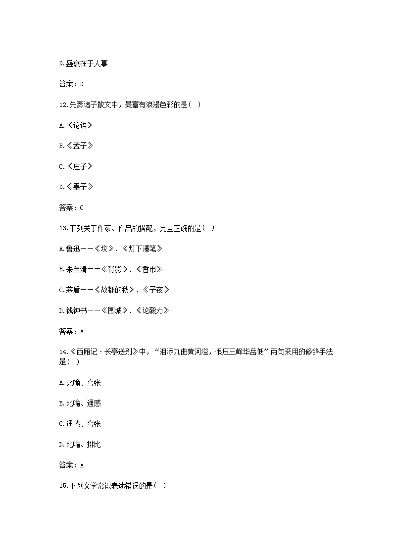 【文檔名稱】 2016年黑龍江成人高考專升本大學語文真題及答案(Word版).doc