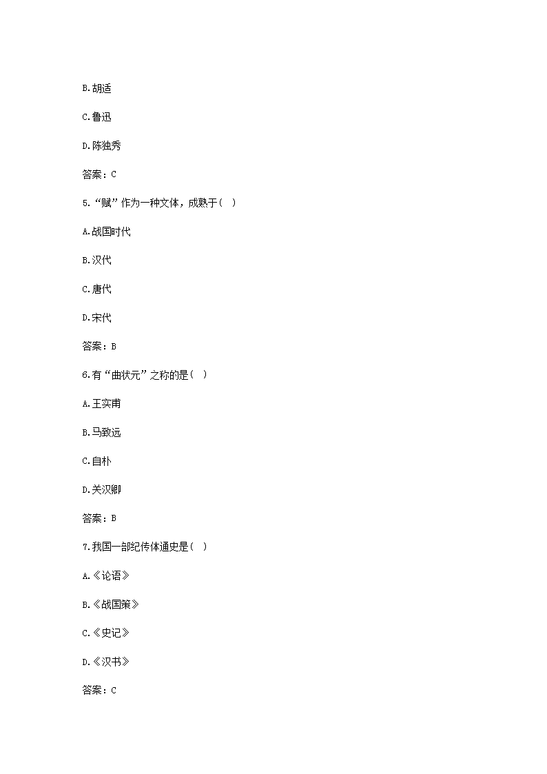 【文檔預覽】 無憂考網(wǎng)整理發(fā)布2016年黑龍江成人高考專升本大學語文真題及答案(Word版),前五頁預覽如下: