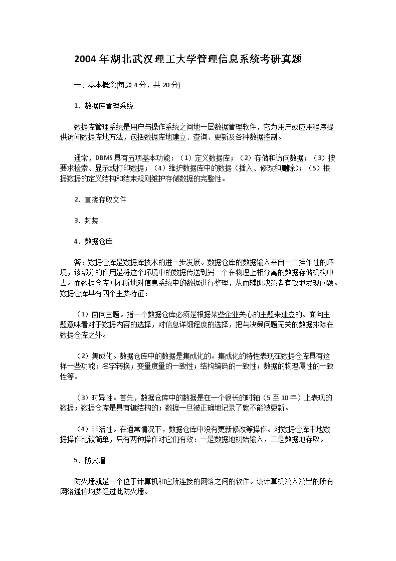 【文檔名稱】 2004年湖北武漢理工大學(xué)管理信息系統(tǒng)考研真題(Word版).doc