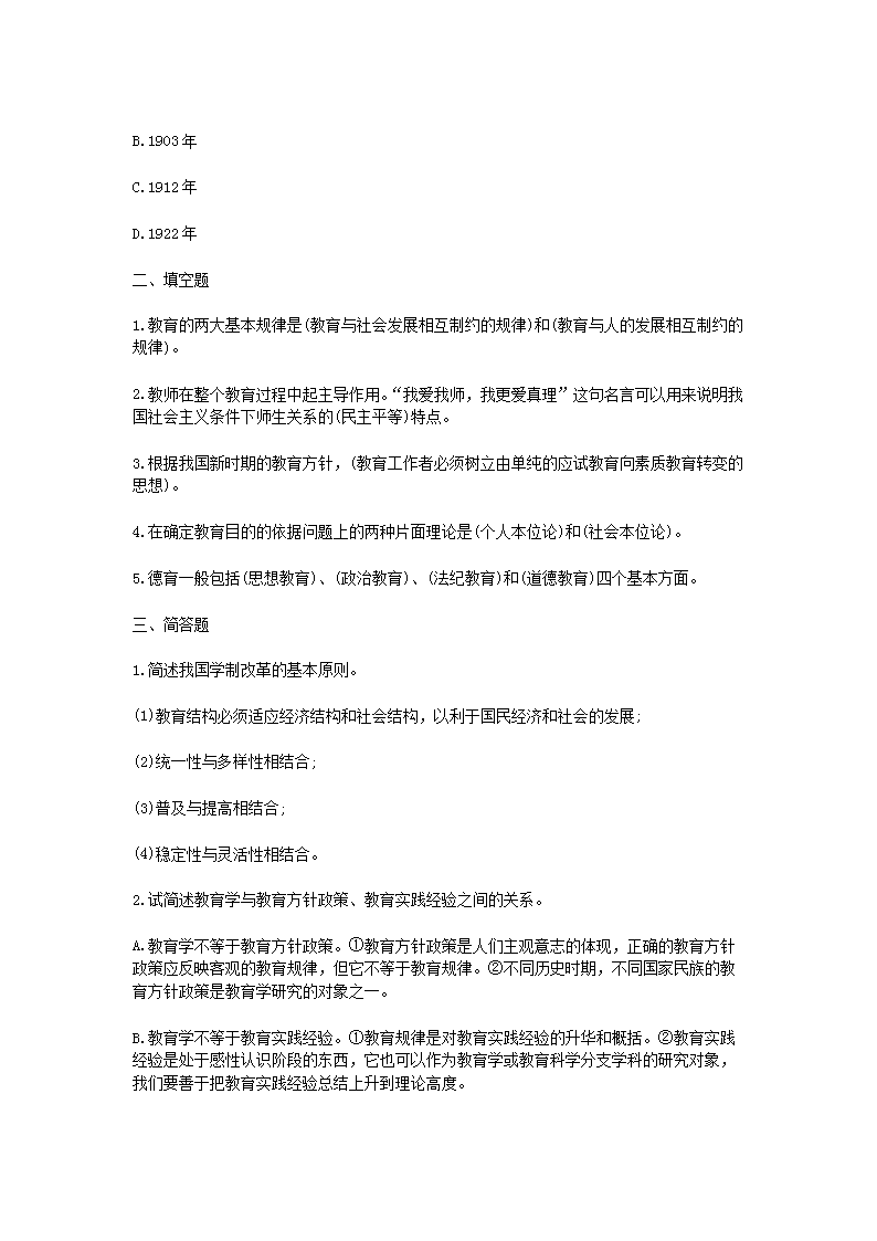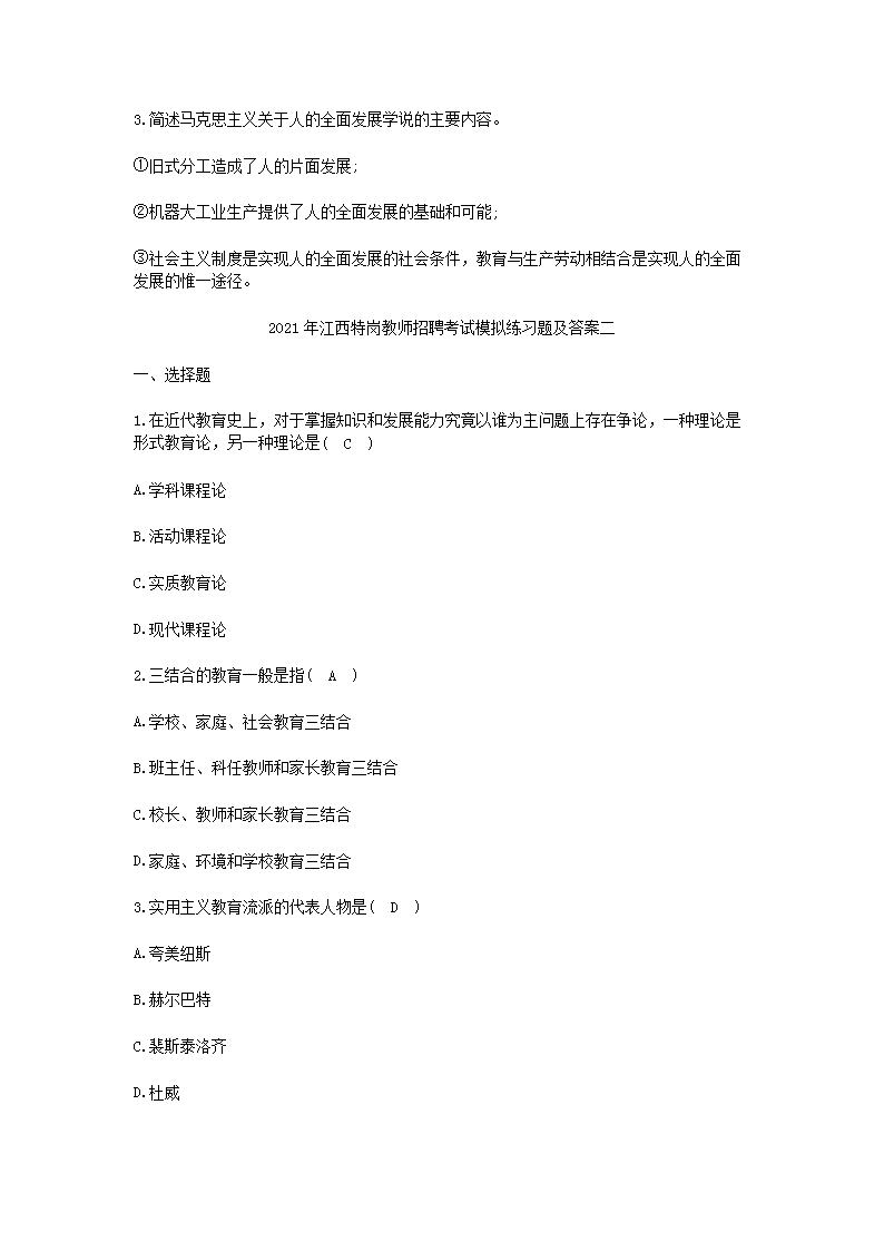 【文檔名稱】 2021年江西特崗教師招聘考試模擬練習(xí)題及答案三套(Word版).doc