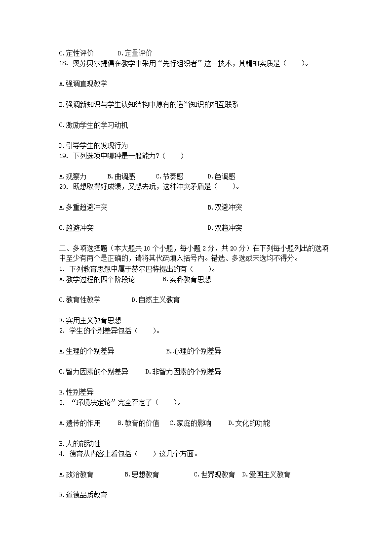 - 2018廣西教師招聘考試教育心理學(xué)與德育工作基礎(chǔ)知識(shí)真題及答案