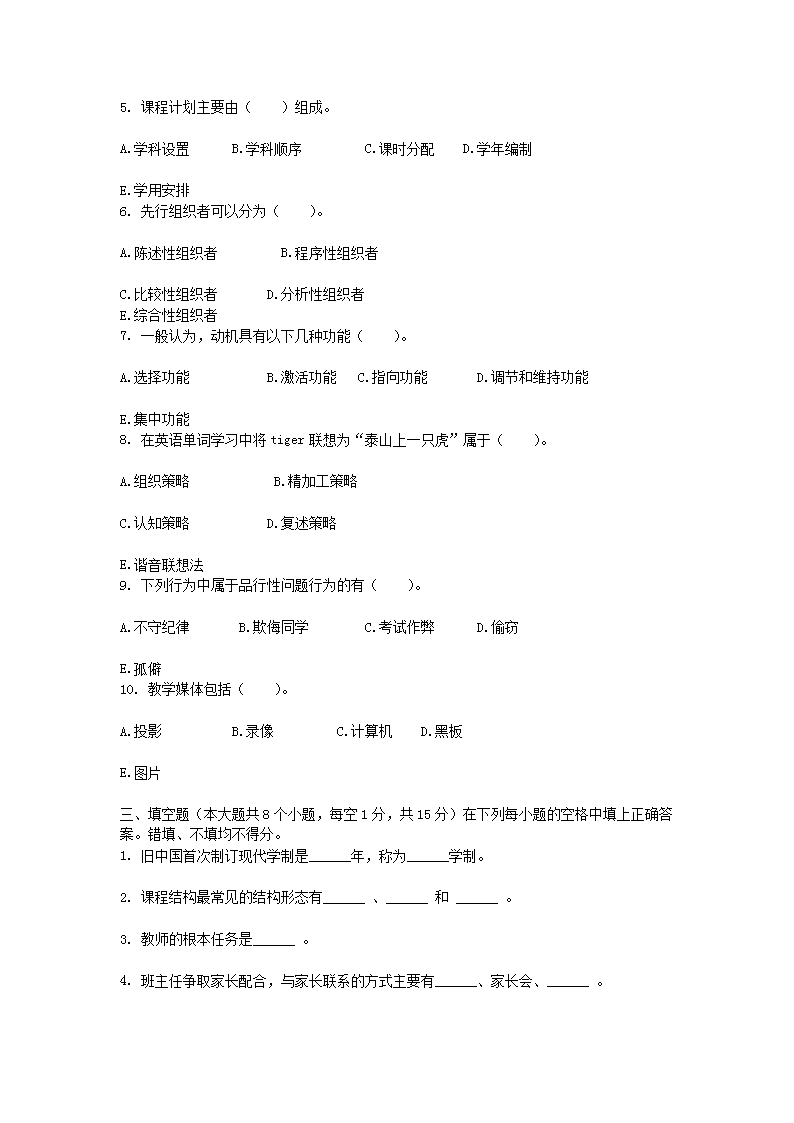 - 2008年廣西特崗教師招聘考試教育理論綜合知識(shí)真題及答案