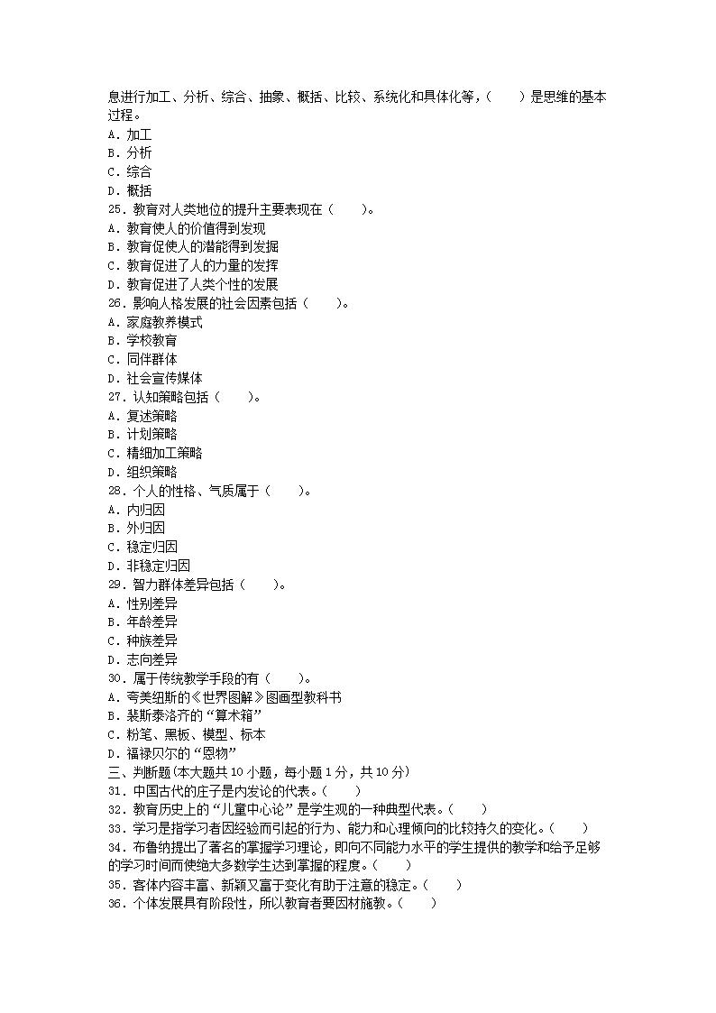 【文檔名稱】 2021四川教師招聘考試教育理論綜合知識模擬題及答案三套(Word版).doc