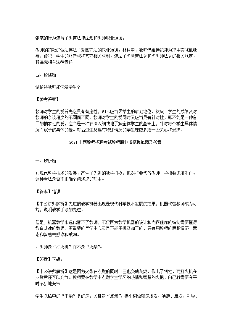 【文檔名稱】 2021山西教師招聘考試教師職業(yè)道德模擬題及答案三套(Word版).doc