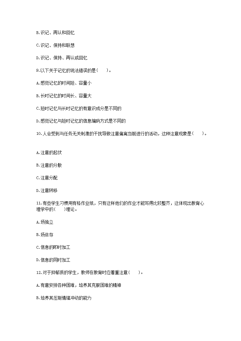 - 2019廣西教師招聘考試教育心理學(xué)與德育工作基礎(chǔ)知識(shí)真題及答案