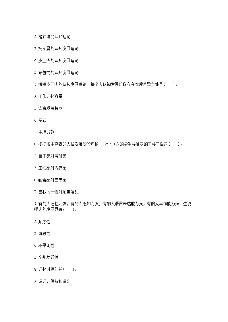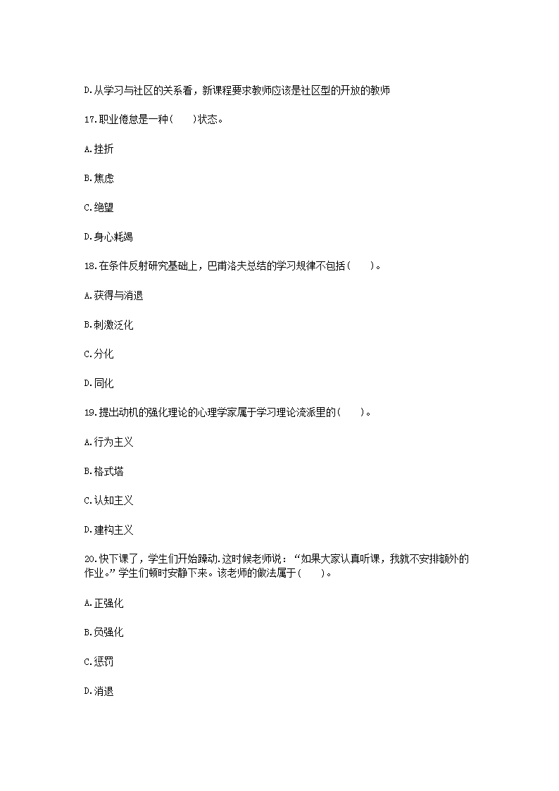 時(shí)間:2021-01-29 17:19:00 來(lái)源:無(wú)憂考網(wǎng) [字體:小 中 大]【文檔名稱】 2021廣西教師招聘考試教育心理學(xué)與德育工作基礎(chǔ)知識(shí)模擬試題及答案三套(Word版).doc