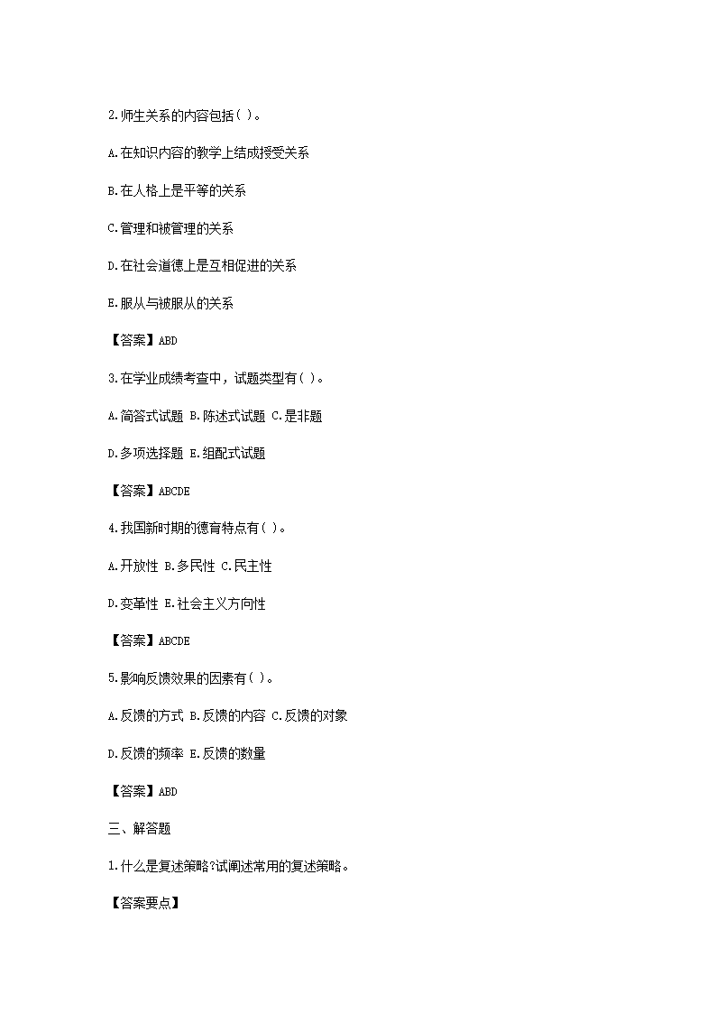 2021寧夏教師招聘考試教育基礎(chǔ)知識(shí)模擬試題及答案三套(Word版)