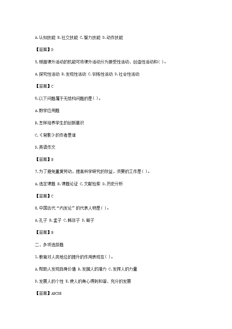 時(shí)間:2021-02-04 17:12:00 來(lái)源:無(wú)憂考網(wǎng) [字體:小 中 大]【文檔名稱】 2021寧夏教師招聘考試教育基礎(chǔ)知識(shí)模擬試題及答案三套(Word版).doc