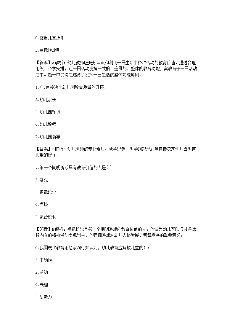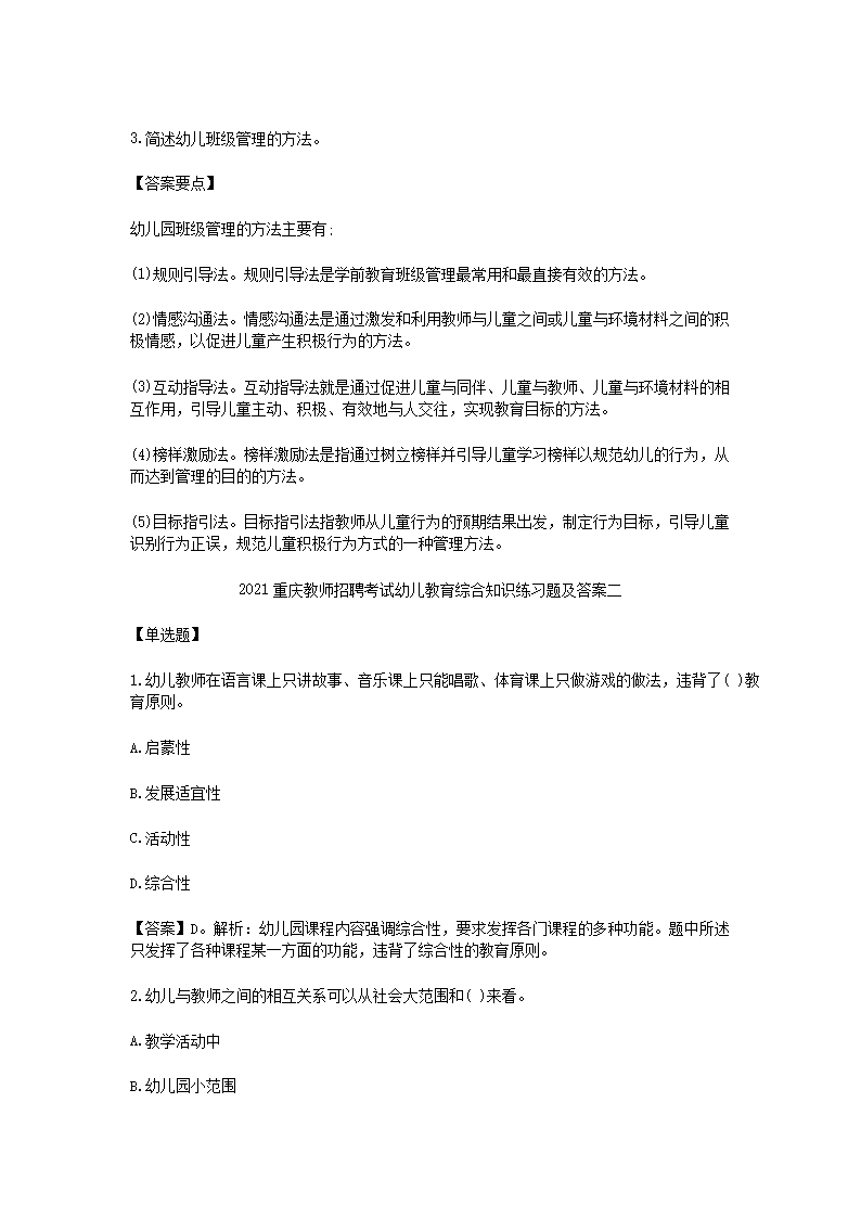 【文檔名稱】 2021重慶教師招聘考試幼兒教育綜合知識練習題及答案三套(Word版).doc
