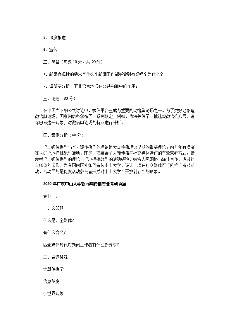 【文檔名稱】 2019一2020年廣東中山大學(xué)新聞與傳播專業(yè)考研真題(Word版).doc