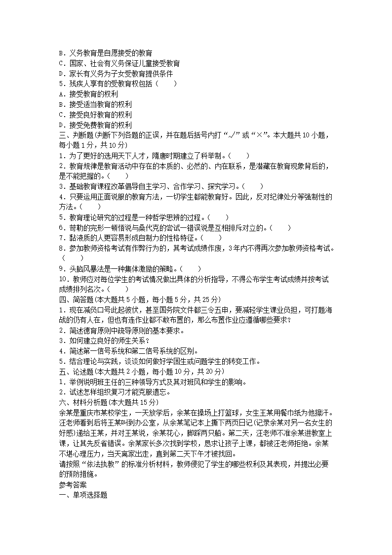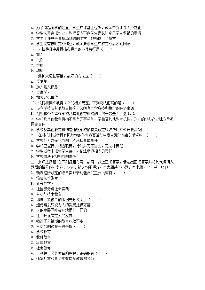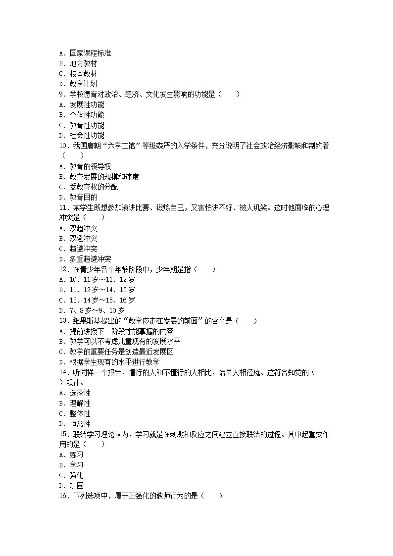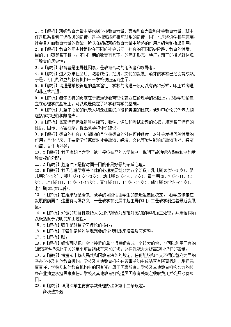 【文檔名稱】 2021湖南教師招聘考試教育理論知識練習題及答案三套(Word版).doc