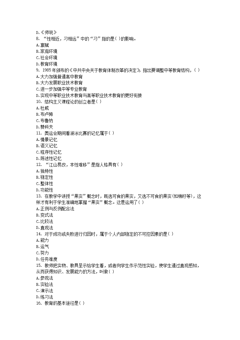 【文檔名稱】 2021四川教師招聘考試小學教育綜合知識模擬試題及答案三套(Word版).doc