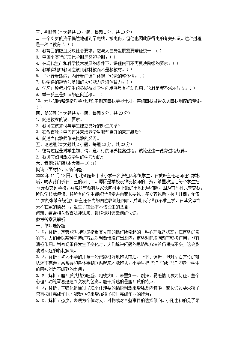 【文檔預覽】 無憂考網(wǎng)整理發(fā)布2021四川教師招聘考試小學教育綜合知識模擬試題及答案三套(Word版),前五頁預覽如下: