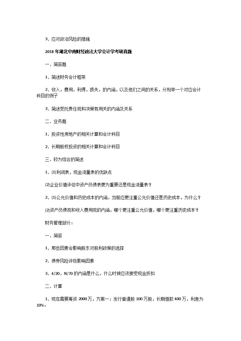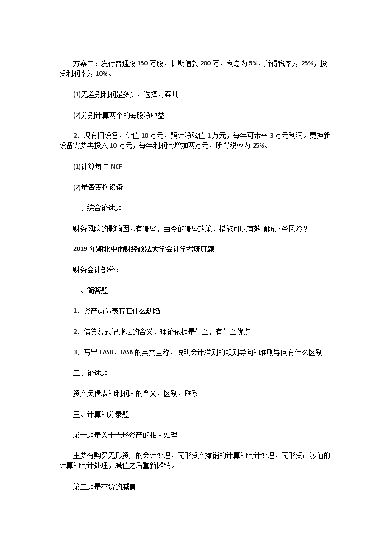 2017一2019年湖北中南財(cái)經(jīng)政法大學(xué)會(huì)計(jì)學(xué)考研真題(Word版)