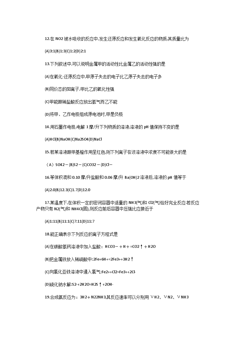 【文檔預(yù)覽】 無憂考網(wǎng)整理發(fā)布1992年上海高考化學(xué)真題及答案(Word版),前五頁預(yù)覽如下:
