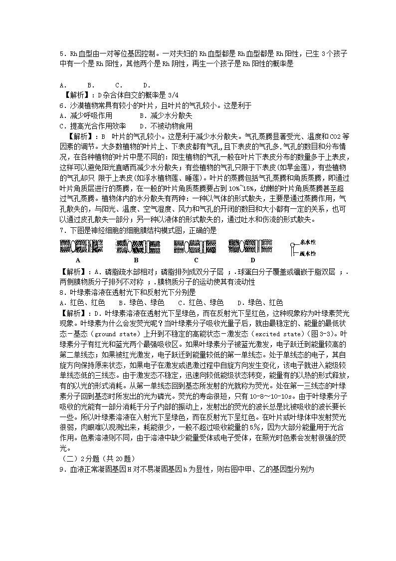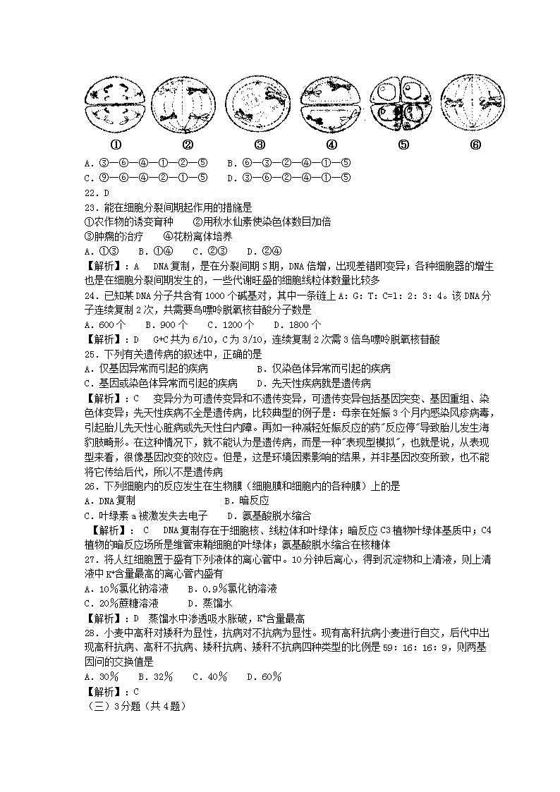 【文檔名稱(chēng)】 2007年上海高考生物真題及答案(Word版).doc