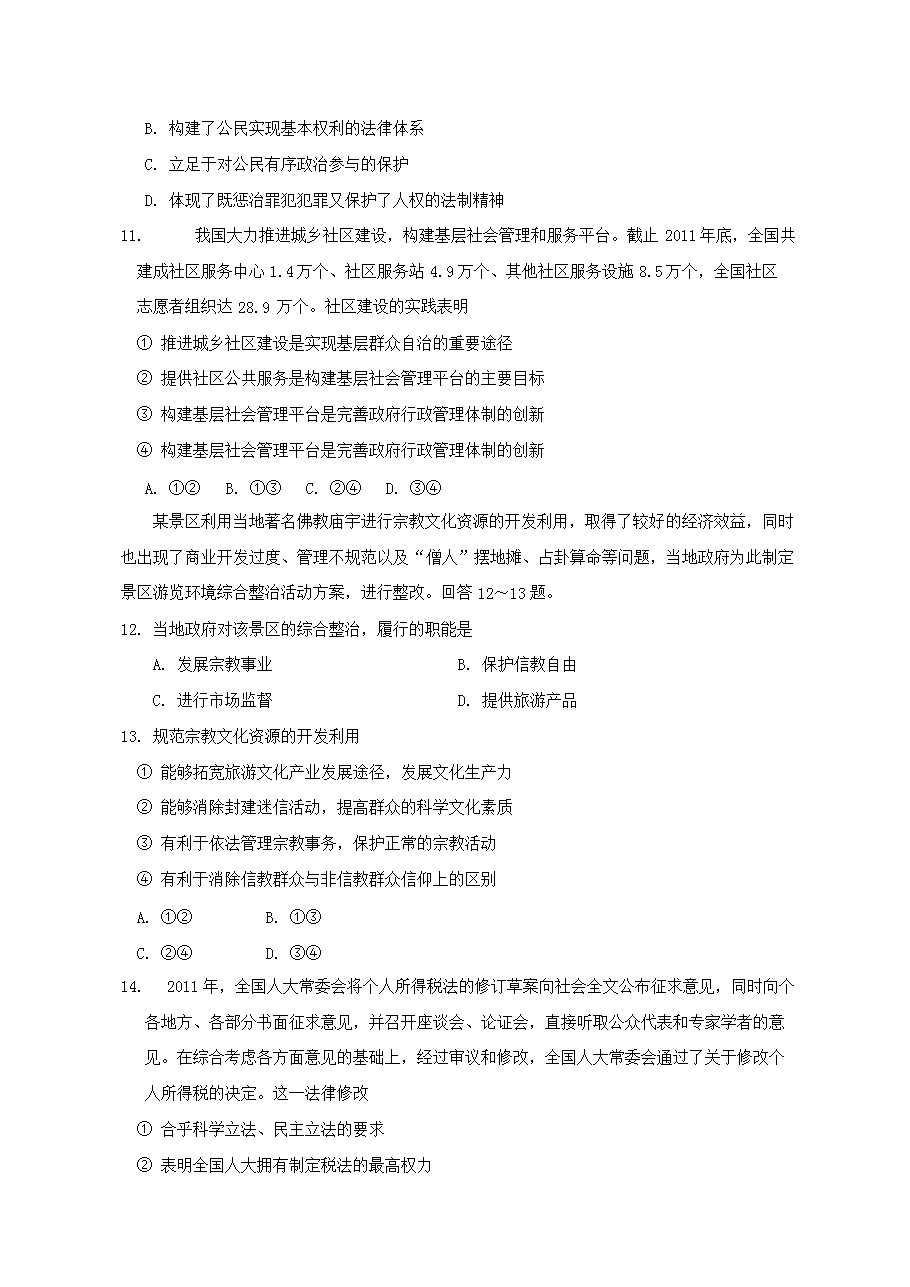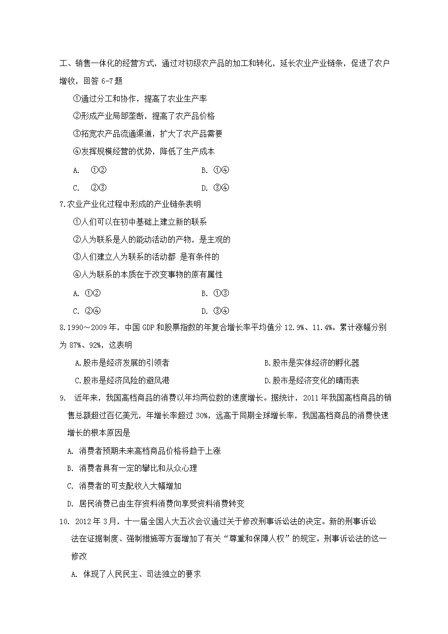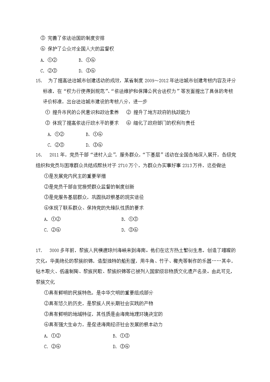 【文檔名稱】 2012年海南高考政治試題及答案(Word版).doc
