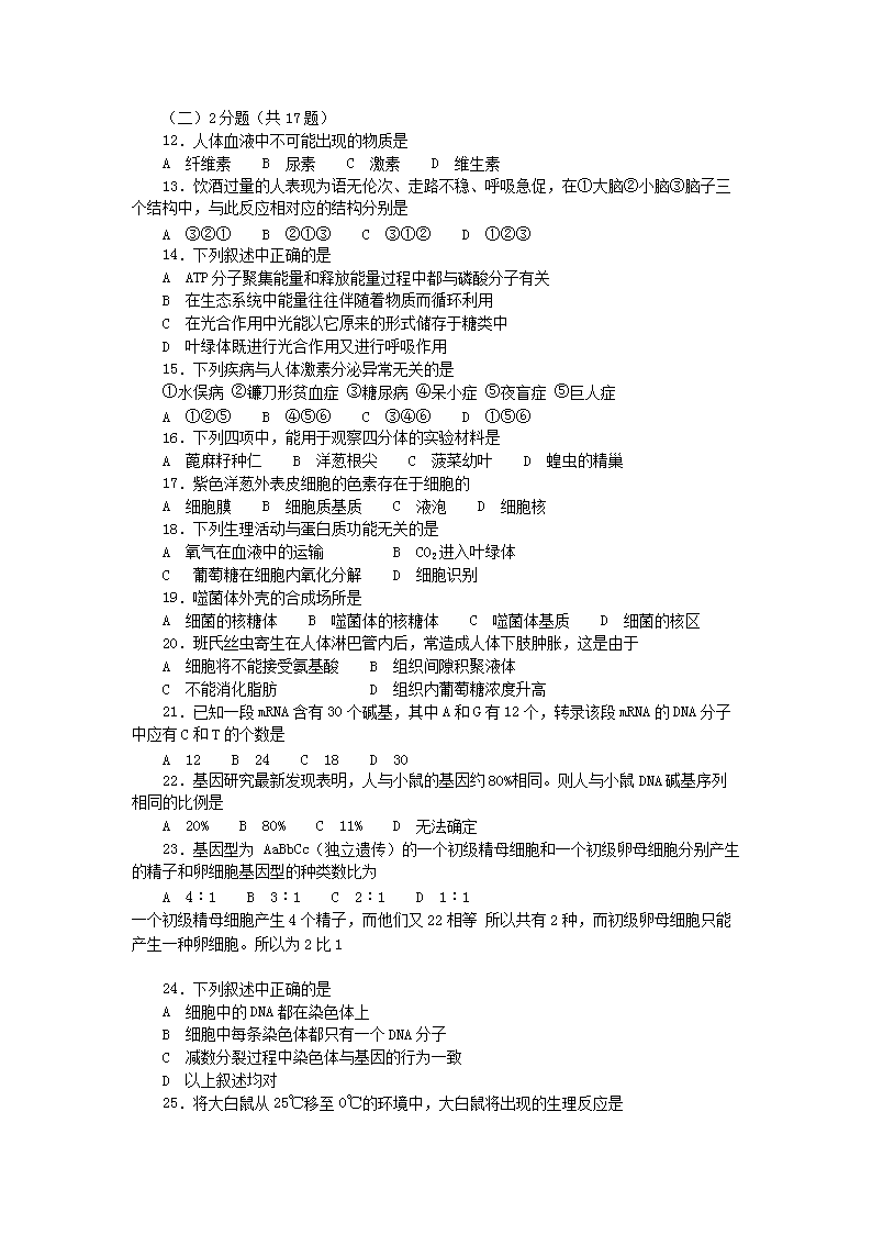 【文檔預(yù)覽】 無憂考網(wǎng)整理發(fā)布2002年上海高考生物真題及答案(Word版),前五頁預(yù)覽如下: