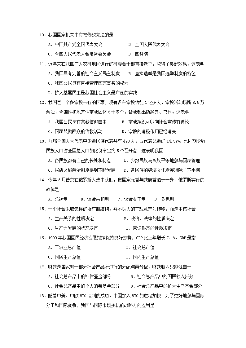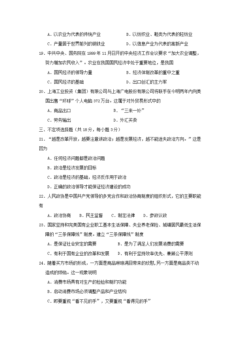 【文檔預覽】 無憂考網(wǎng)整理發(fā)布2000年上海高考政治真題及答案(Word版),前五頁預覽如下: