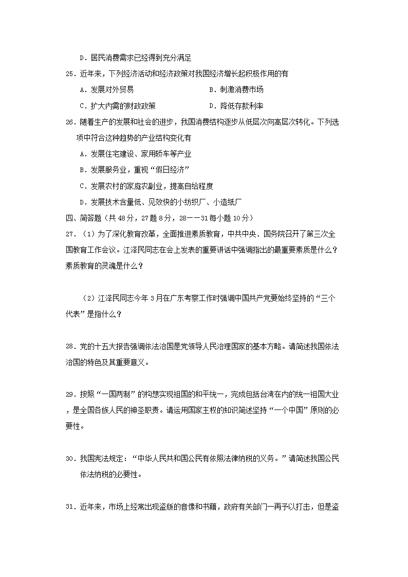 【文檔名稱】 2000年上海高考政治真題及答案(Word版).doc